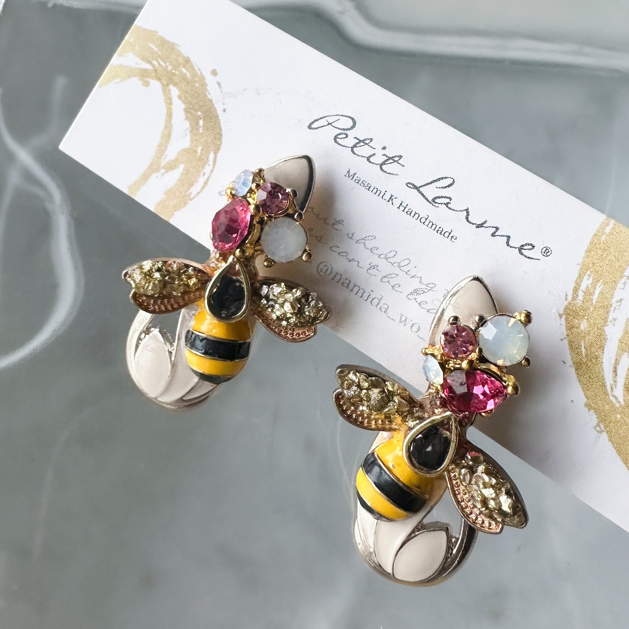 エレガントさ:クリスタルの輝きとミツバチの繊細なディテールが、耳元に上品なアクセントを。